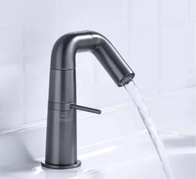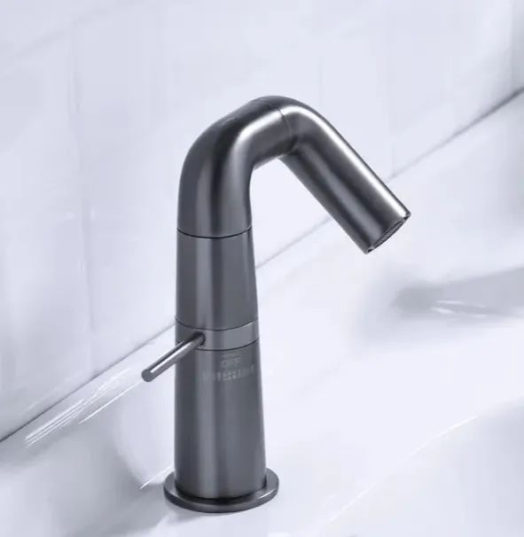 Смеситель для раковины Haiba HB10813-3 с поворотным изливом, материал латунь, цвет графит.
