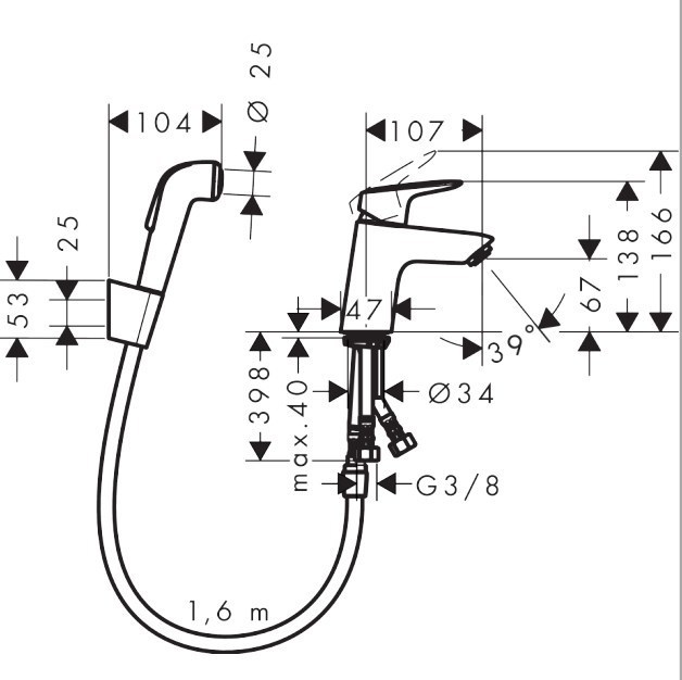 Описание смеситель для раковины,смеситель для раковины с гигиеническим душем Hansgrohe 71290000
