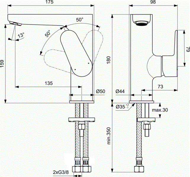 - гибкая подводка G3/8"
