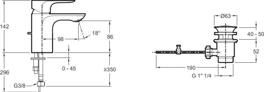 - Донный клапан в комплекте