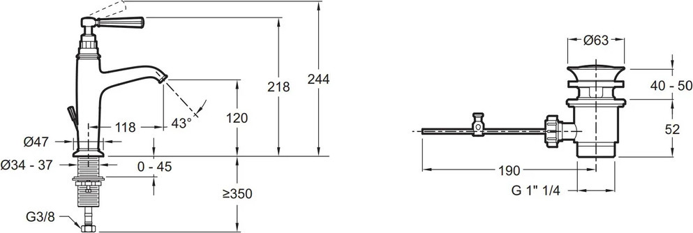 - Донный клапан с переливом
