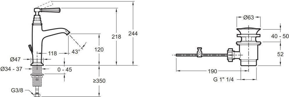 - Донный клапан в комплекте
