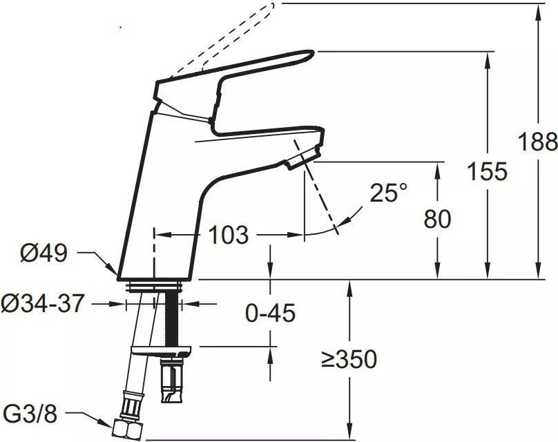 - Длина излива: 10.3 см