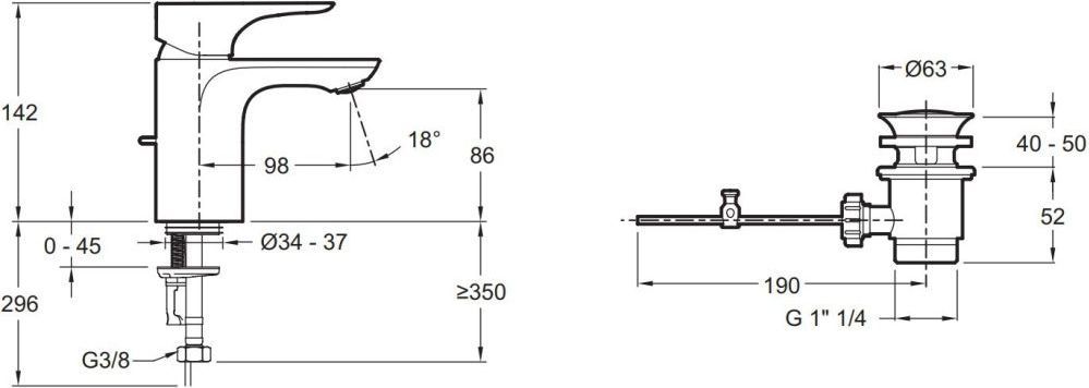 Характеристики смеситель для раковины Jacob Delafon (E23718-CP)