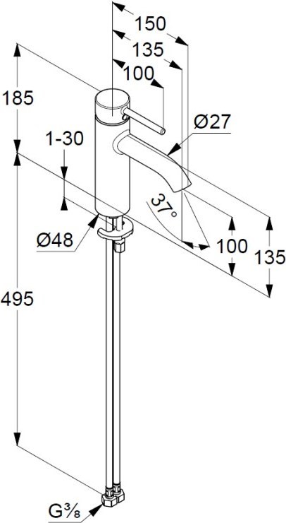 Смеситель для раковины Kludi Bozz 382820576, материал - латунь, цвет - хром.