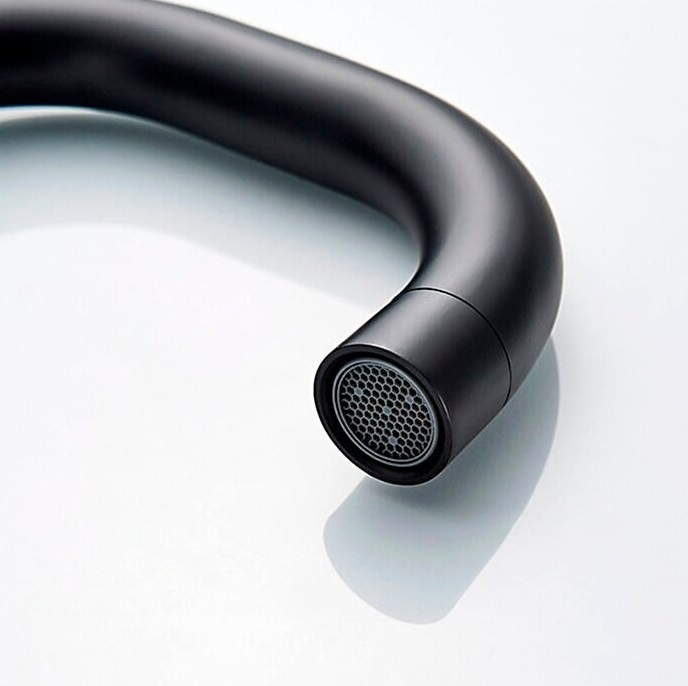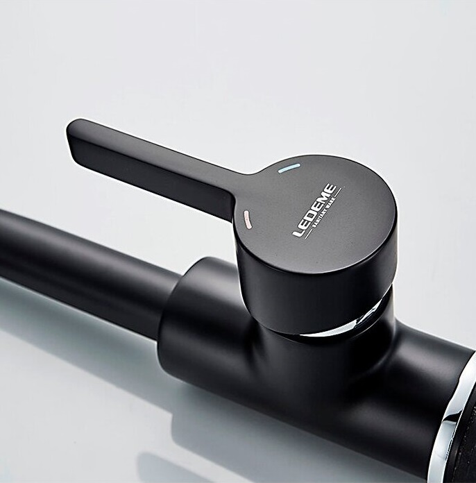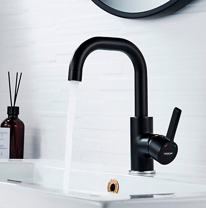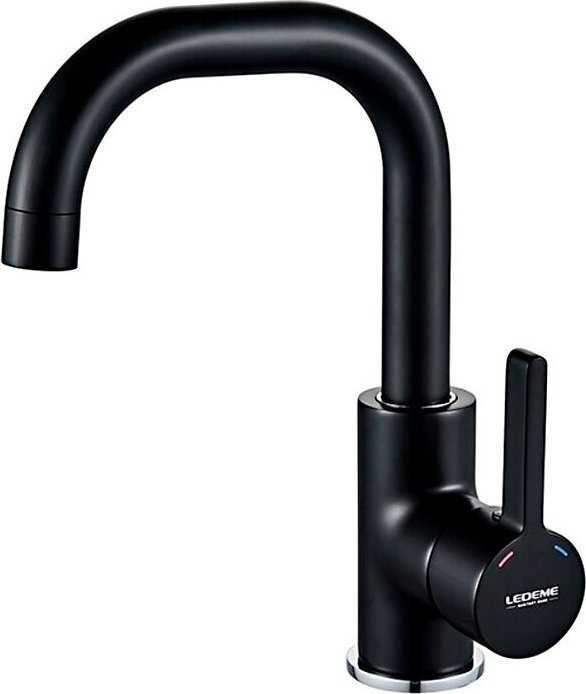 Смеситель для раковины Ledeme L1099B с поворотным изливом, материал - латунь, цвет - черный.