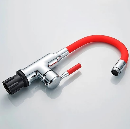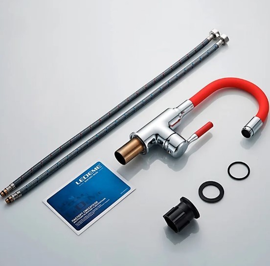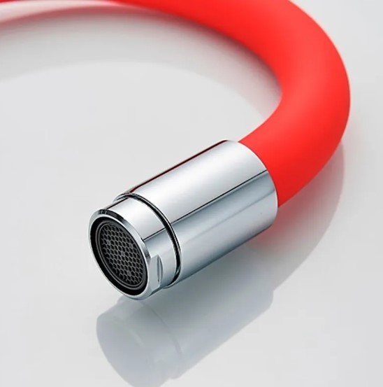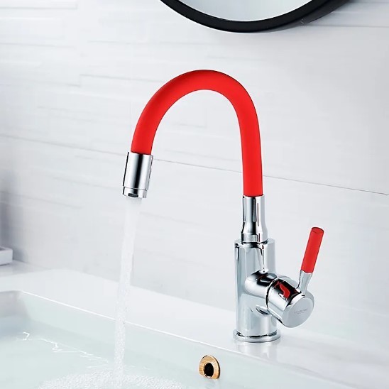 Смеситель для раковины Ledeme L1399-1 с гибким и поворотным изливом, материал - латунь, цвет - красный/хром.