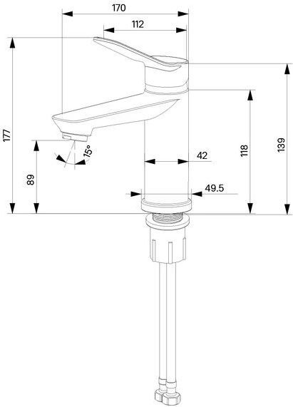 Смеситель для умывальника, однозахватный, латунь, никель-хромовое покрытие, керамический картридж 35 мм, пластиковый аэратор, пьедестал. В комплекте: гибкая подводка 35 см, комплект крепежа. Упаковка: картонная коробка, индивидуальный мешок.