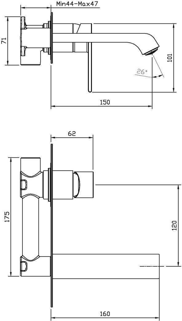 Характеристики смеситель для раковины настенный BelBagno (AURORA-BLVM-CRM-W0)