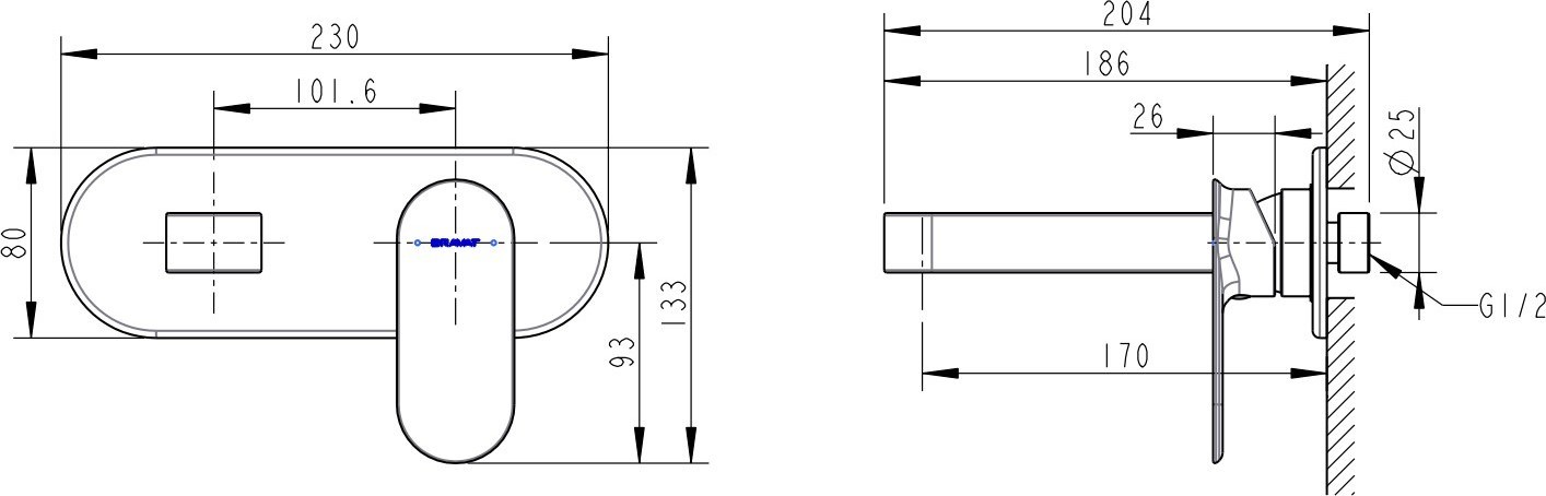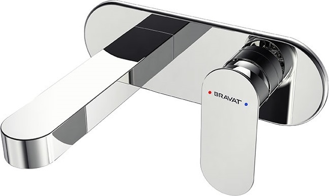 Смеситель для раковины настенный Bravat Gina P69182C-ENG, материал - латунь, цвет - хром. Скрытая часть D968C-ENG приобретается отдельно.