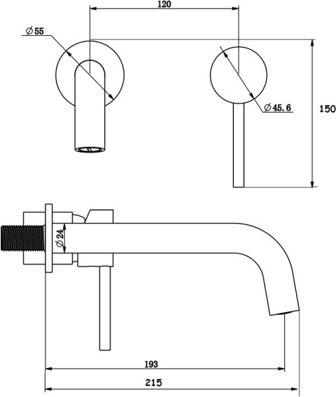 Смеситель для раковины настенный Bronze de Luxe Scandi 14511B со скрытой частью, материал латунь, цвет чёрный матовый.