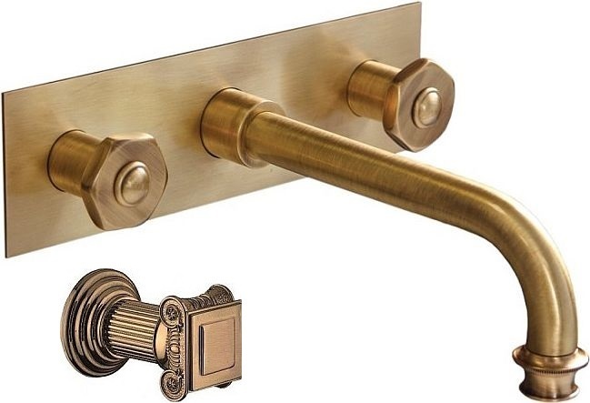 Смеситель для раковины настенный Cezares APHRODITE-BLS2-02-O со скрытой частью, ручки - металл, материал - латунь, цвет - бронза.