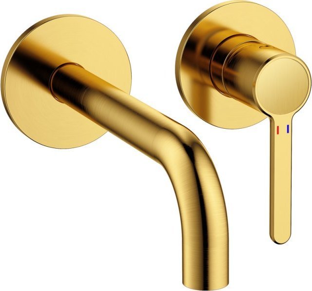 Смеситель для раковины настенный Cezares ECO-DI-BORO со скрытой частью, материал - латунь, цвет - брашированное золото.