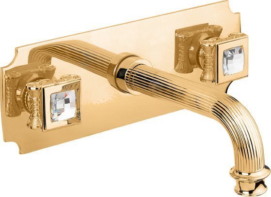Смеситель для раковины настенный Cezares OLIMP-BLS2-03/24-Sw со скрытой частью, ручки - Swarovski, материал - латунь, цвет - золото 24 карат.