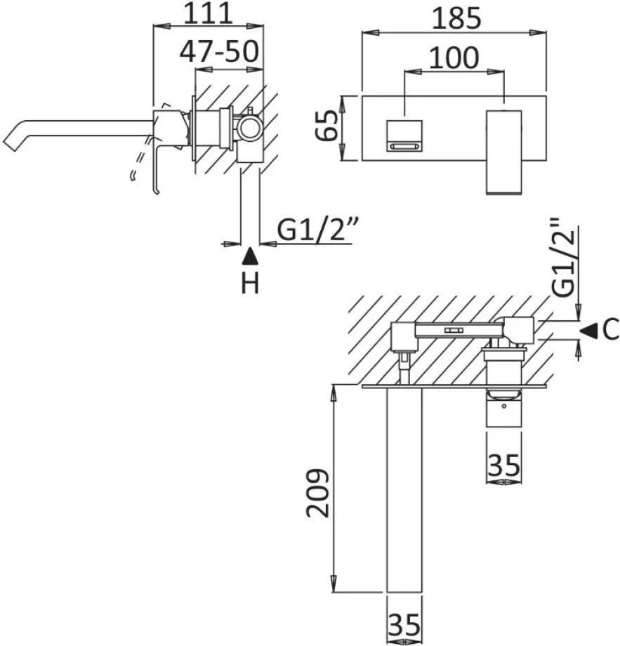 Описание смеситель для раковины настенный Cezares PORTA-BLI-SR