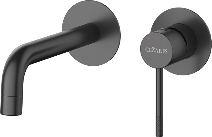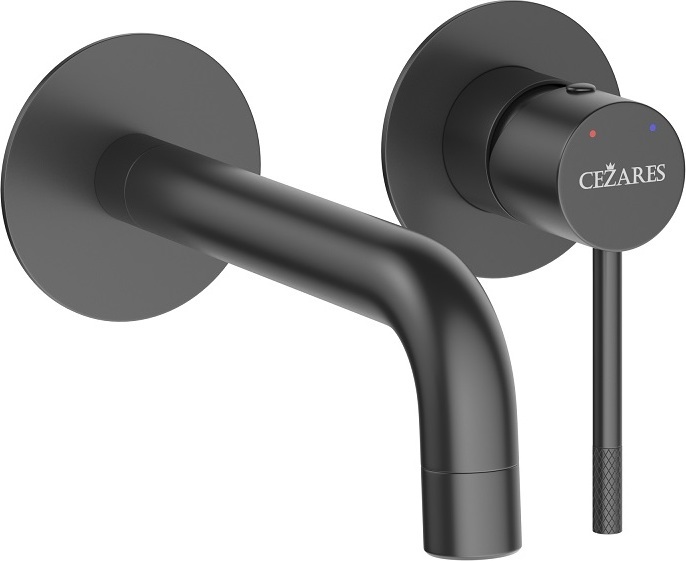 Смеситель для раковины настенный Cezares RELAX-BLI2-1-NOP-W0 (со скрытой частью) чёрный матовый
