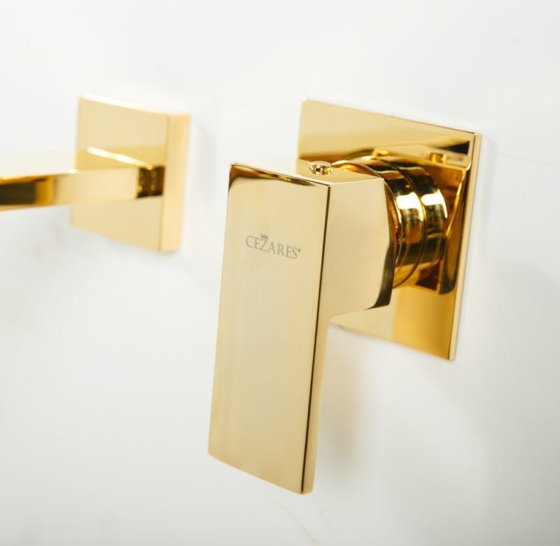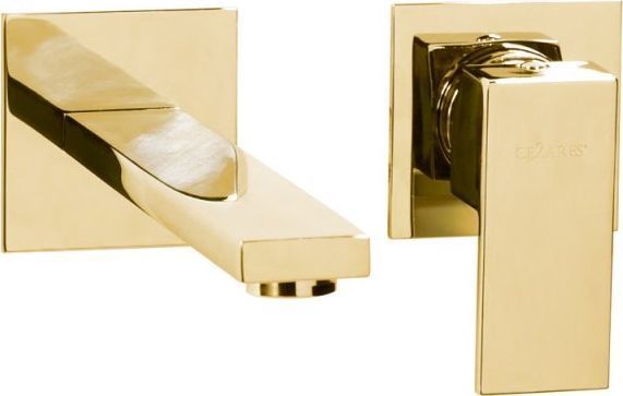 Смеситель для раковины настенный Cezares UNIKA-BLI2-03/24 со скрытой частью, материал - латунь, цвет - золото.