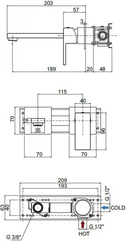 Описание смеситель для раковины настенный Cezares UNIKA-BLI2-NOP