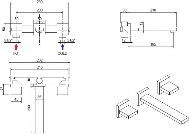 - Отверстия для монтажа: 3 отверстия