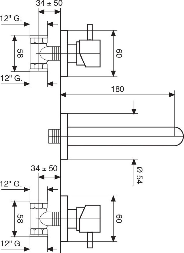 Смеситель для раковины настенный Emmevi Piper CR45155 со скрытой частью, материал - латунь, цвет - хром.