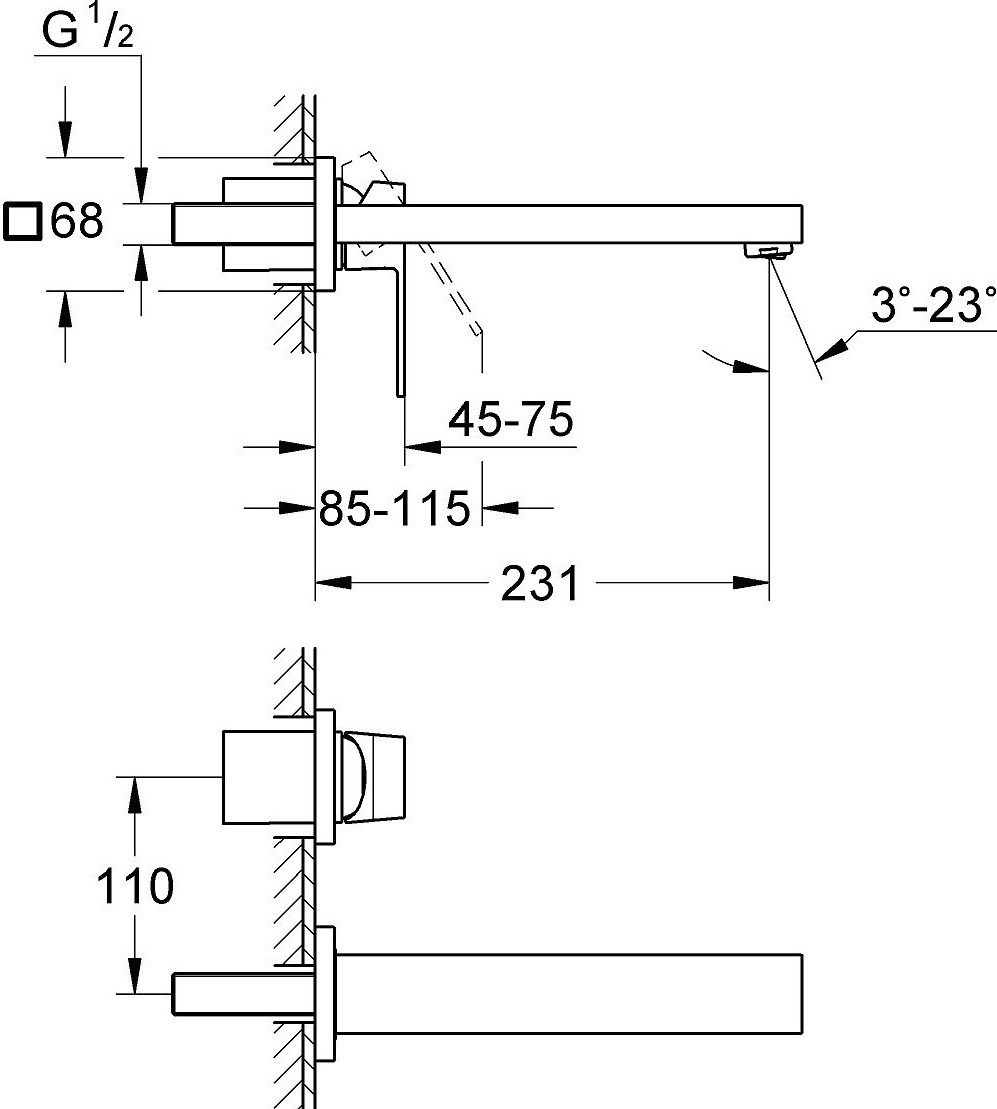 Характеристики смеситель для раковины настенный Grohe (23447000)