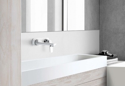 Смеситель для раковины настенный Kludi Balance 185 мм 522469175, материал - латунь, цвет - белый. Скрытая часть приобретается отдельно.