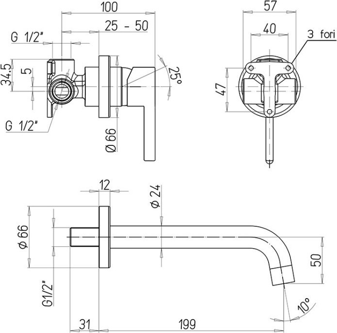 Описание смеситель для раковины настенный Paini 74PZ208