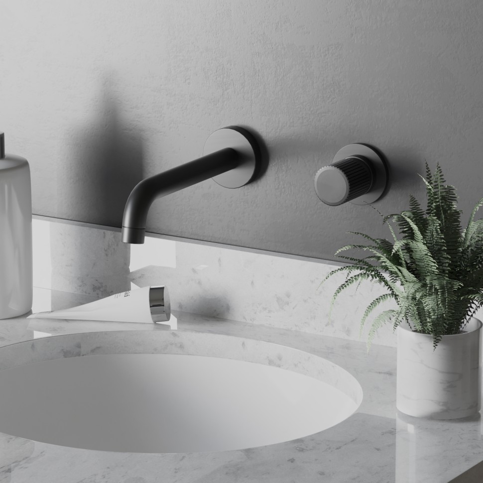 Смеситель для раковины настенный Paini Cox Grip 7GPZ208 со скрытой частью, материал латунь, цвет чёрный матовый.