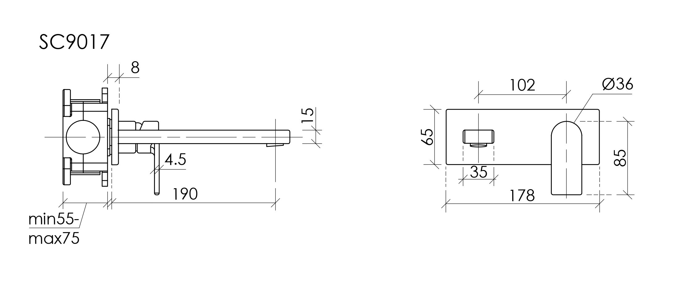 Описание смеситель для раковины настенный Sancos SC9017GG