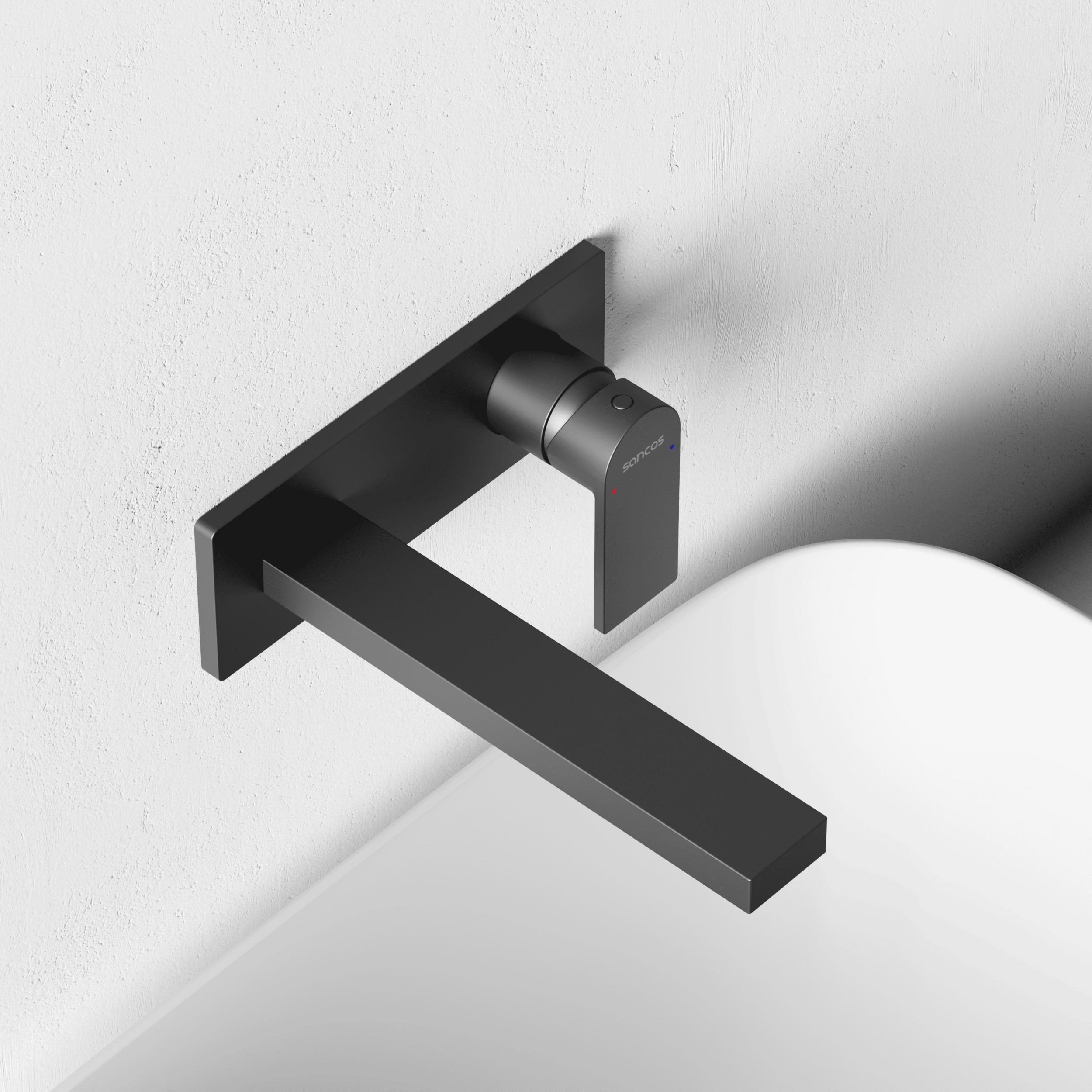 Смеситель для раковины настенный Sancos Studio SC9017GG, вороненая сталь (со скрытой частью)
