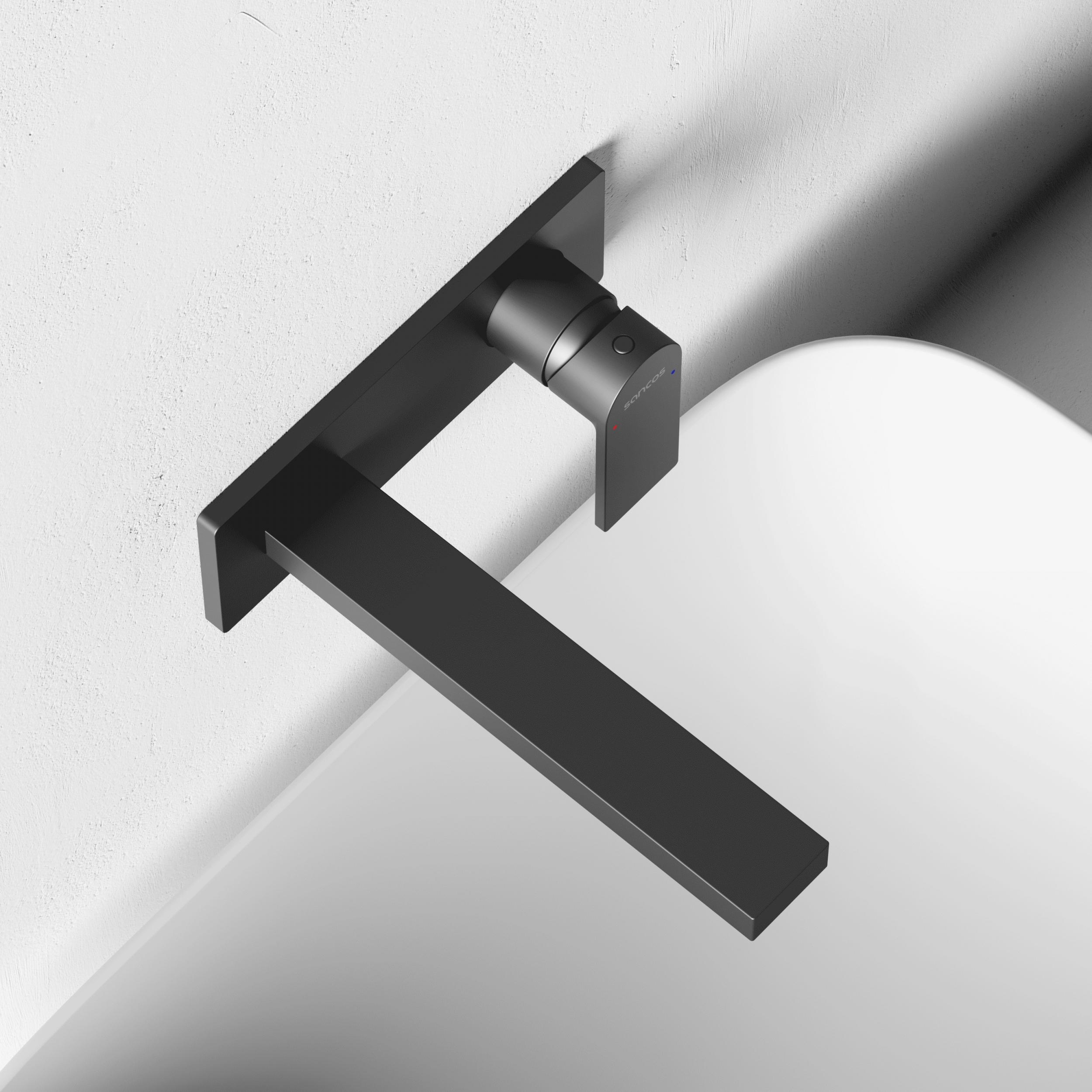 Смеситель для раковины настенный Sancos Studio SC9017GG с внутренней частью в комплекте, материал латунь, цвет вороненая сталь.