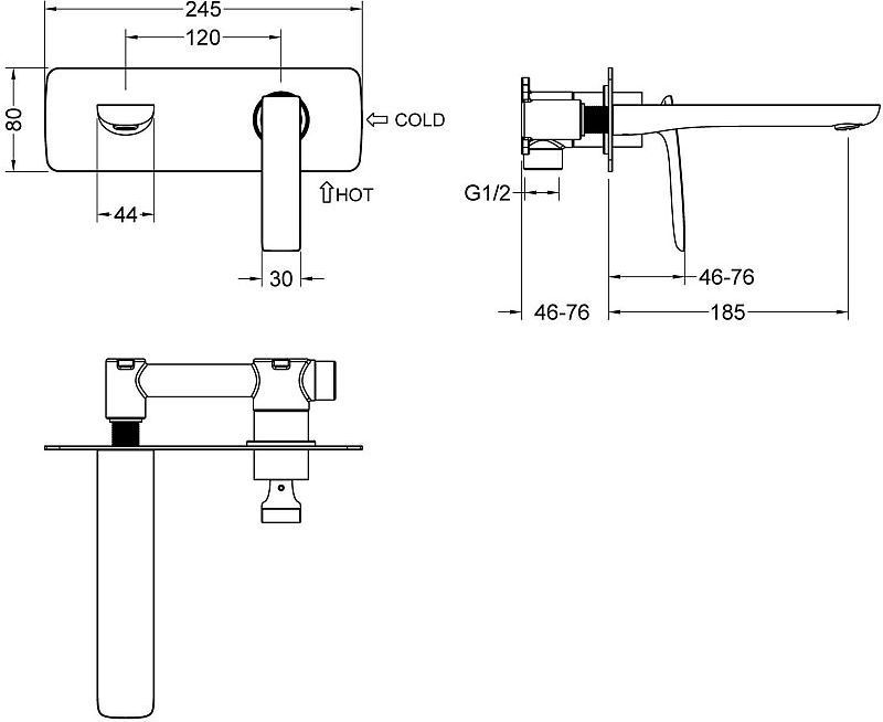 Смеситель для раковины настенный Timo Helmi 4071/03SM, со скрытой частью, материал - латунь, цвет - черный матовый.