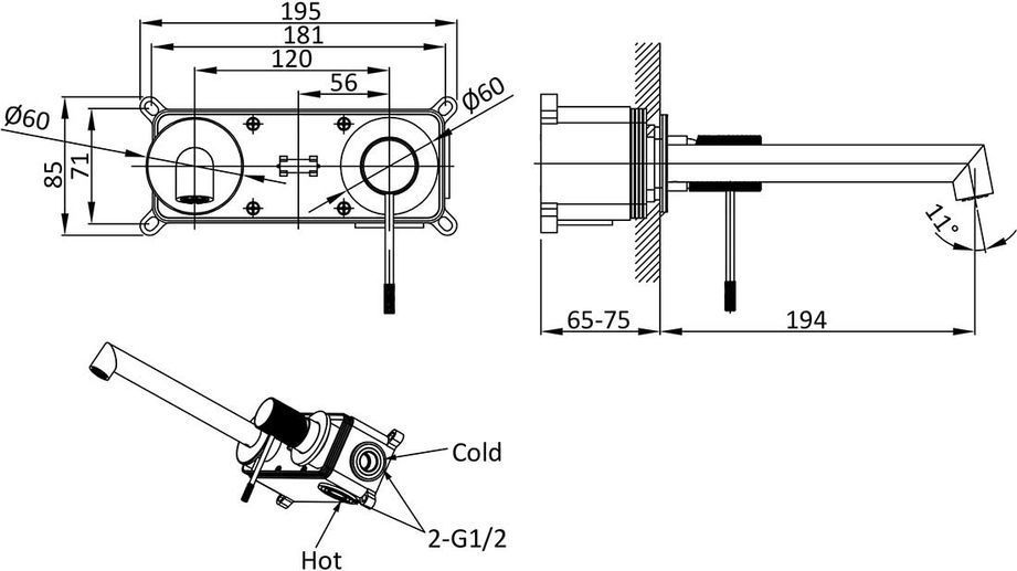Смеситель для раковины настенный Vincea Desire VBFW-1D1CH со скрытой частью, материал - латунь, цвет - хром.