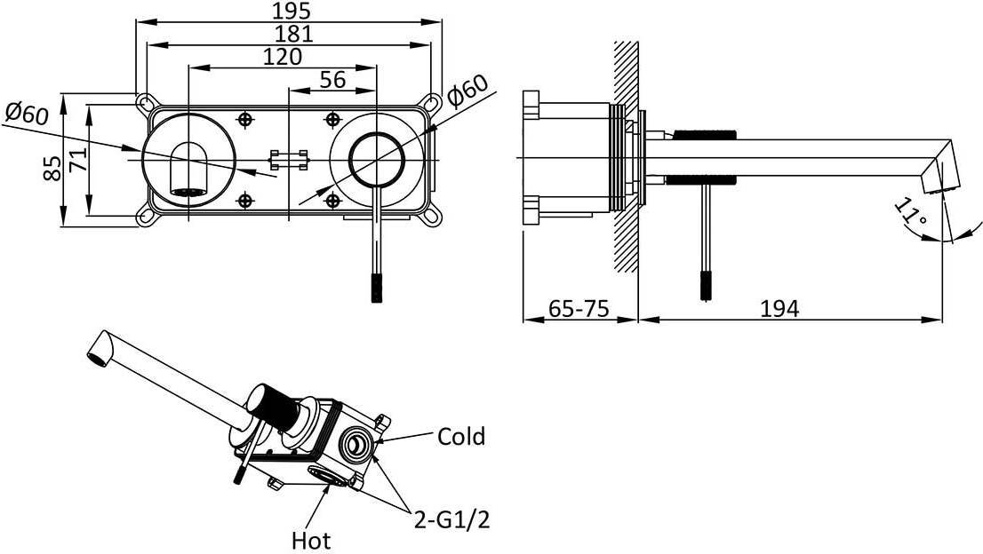 Характеристики смеситель для раковины настенный Vincea (VBFW-1D1GM)