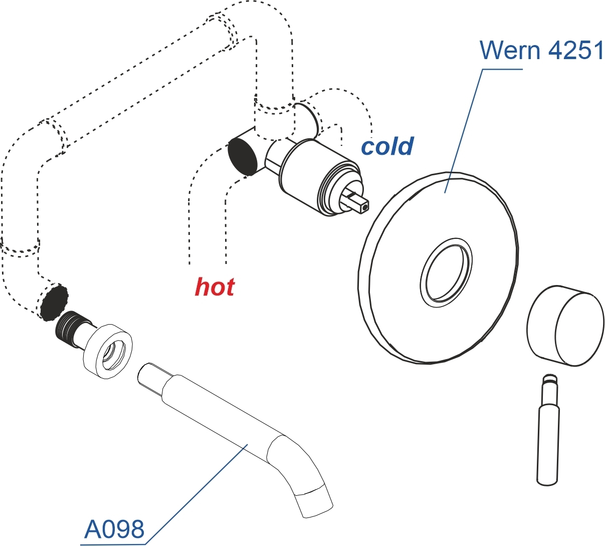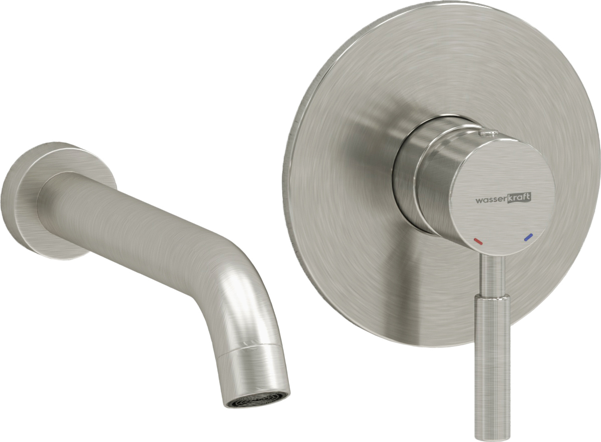 Смеситель для раковины настенный WasserKraft Wern A42583 со скрытой частью, материал - латунь, цвет - никель.