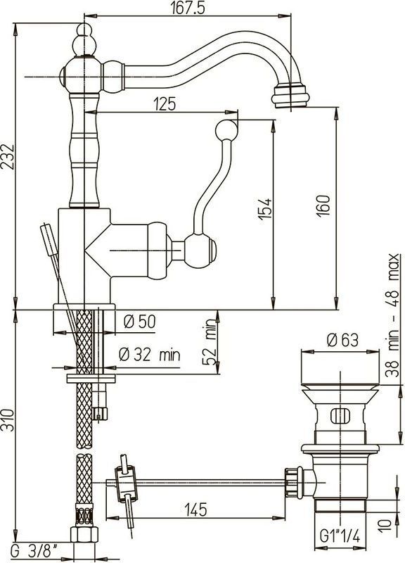 Смеситель для раковины Paini Duomo с донным клапаном, материал латунь, цвет бронза.
