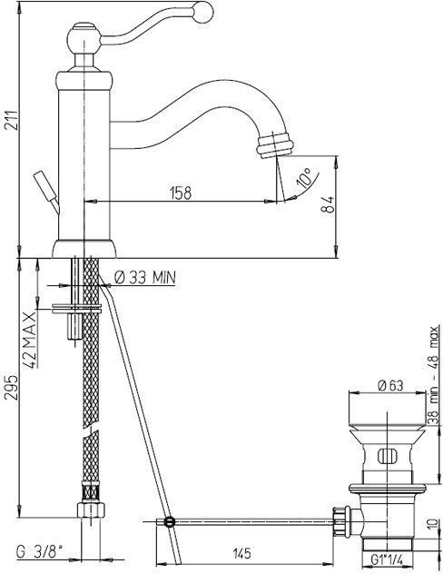 Характеристики смеситель для раковины Paini (88OP211)