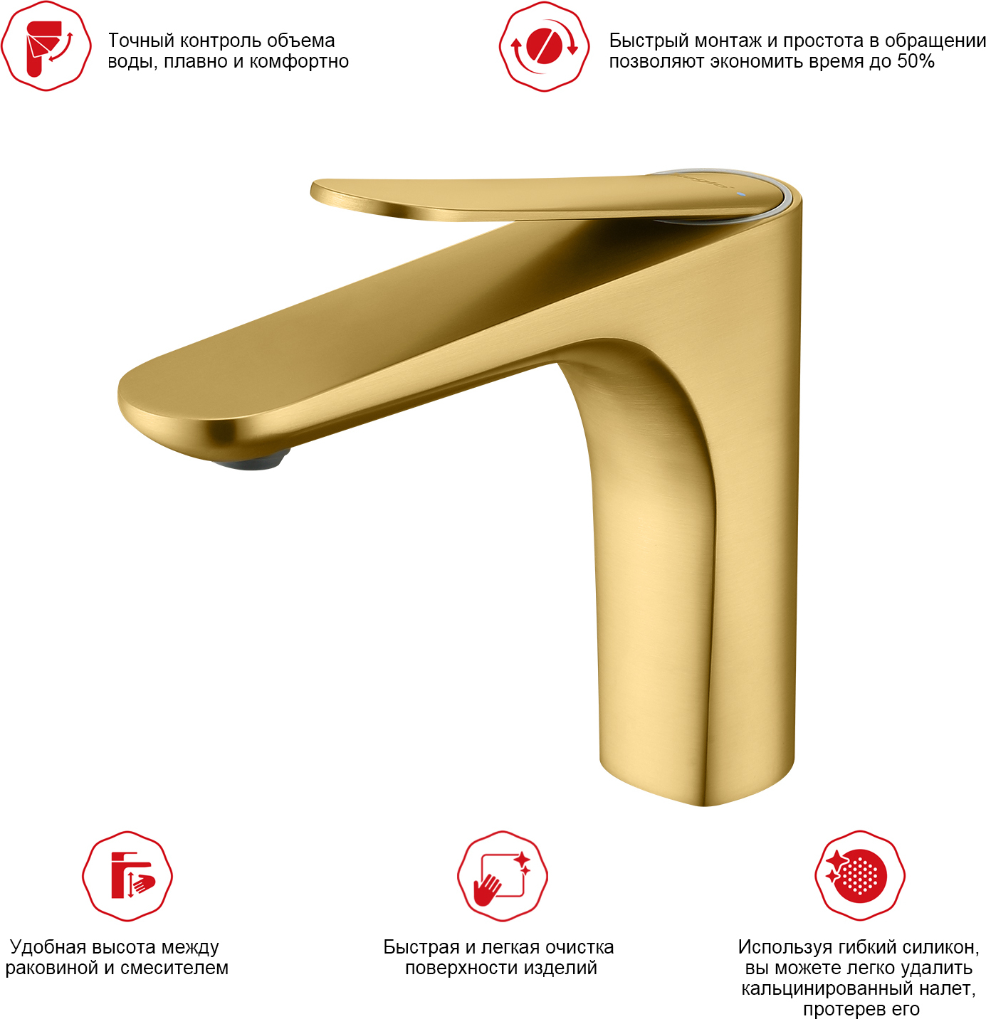 Смеситель для раковины Raglo R21.10.03, золотой сатин