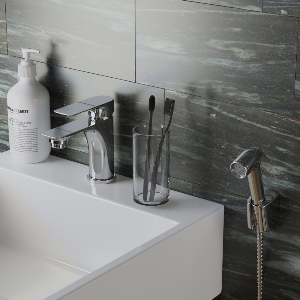 Смеситель для раковины с гигиеническим душем Paini Garda 76CR205/574, материал - латунь, цвет - хром.