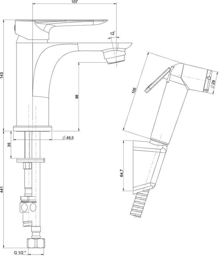 Характеристики смеситель для раковины с гигиеническим душем Paini (76CR205/574)