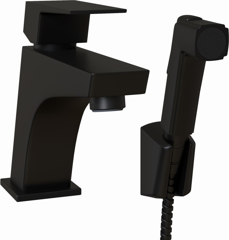 Смеситель для раковины с гигиеническим душем Paini Torre 98YO205/574, материал - латунь, цвет - черный.