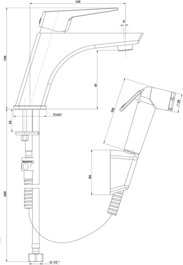 Характеристики смеситель для раковины с гигиеническим душем Paini (98YO205/574)