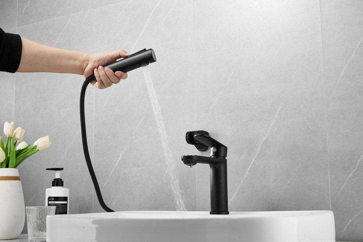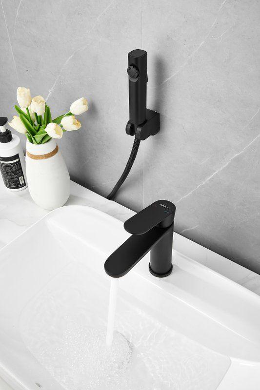 Смеситель для раковины с лейкой для биде Belz B12713-7, чёрный