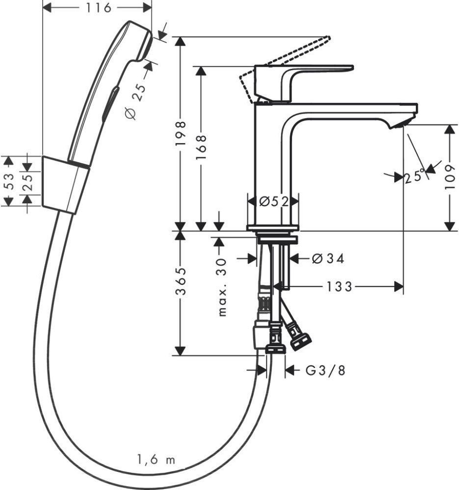 Характеристики смеситель для раковины с гигиеническим душем Hansgrohe (72215670)