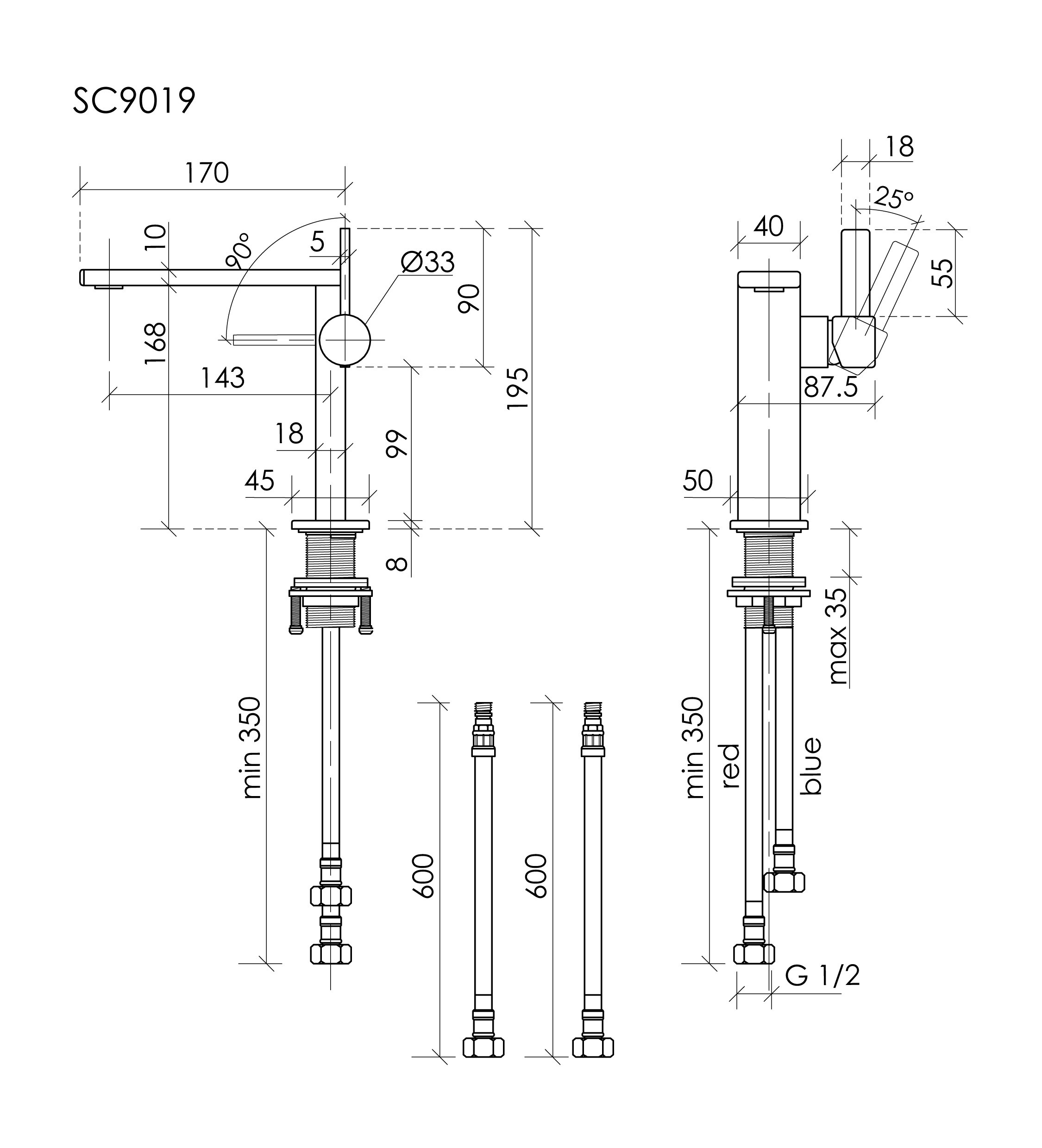 - Гибкая подводка в оплетке из нержавеющей стали, с увеличенной длиной - 600 мм