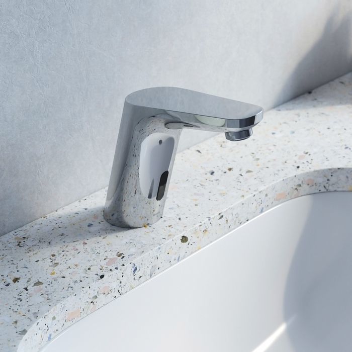 Смеситель с сенсорным управлением из коллекции Pulse эстетически привлекателен и максимально функционален: он исключает непосредственный контакт рук с его корпусом, что дает больше возможностей для эффективного соблюдения гигиены и сохранения здоровья всех членов семьи. Плавные линии и отсутствие лишних стыков формируют по-настоящему современный и стильный продукт, который будет хорошо смотреться в интерьере любой современной ванной и наполнять ее пространство удивительным комфортом. Точная регулировка температуры производится на блоке питания и позволяет подобрать комфортную для себя, а оптимальное время подачи воды (1 минута) помогает избежать необоснованного перерасхода воды.
