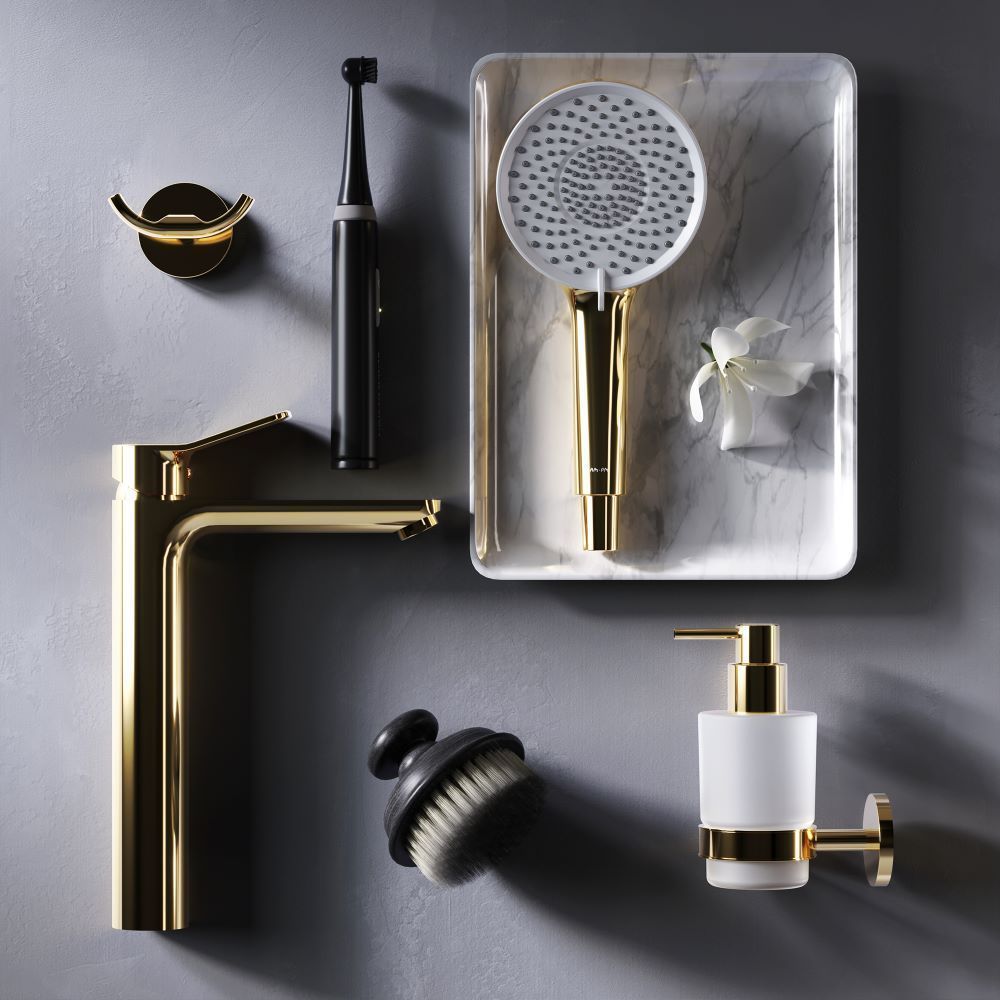 - Настоящее произведение ювелирного искусства в вашей ванной комнате: корпус смесителя равномерно покрыт тончайшим слоем 24-каратного золота. Нанесение драгоценного финишного слоя выполнено методом вакуумного напыления, в процессе которого микрочастицы золота образуют стойкое соединений с латунной основой.
