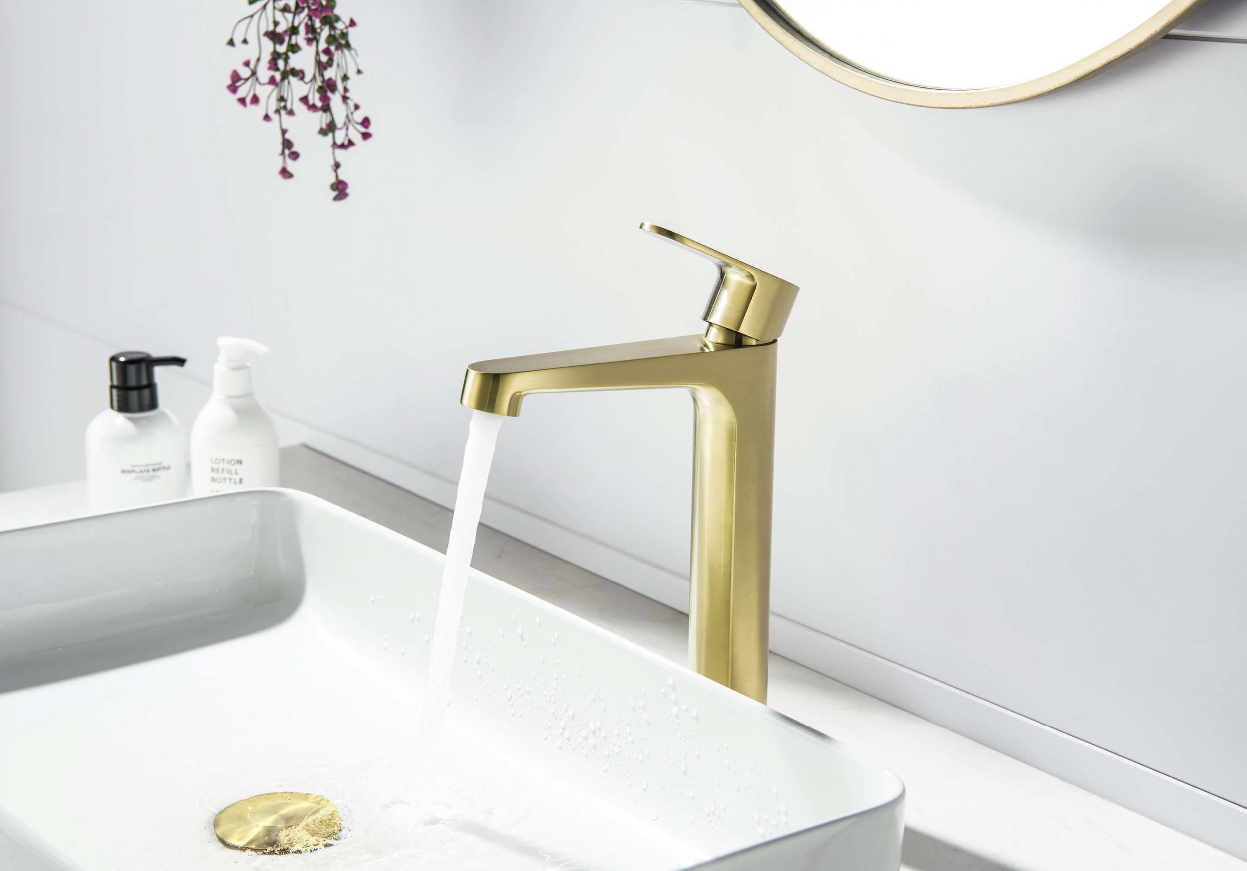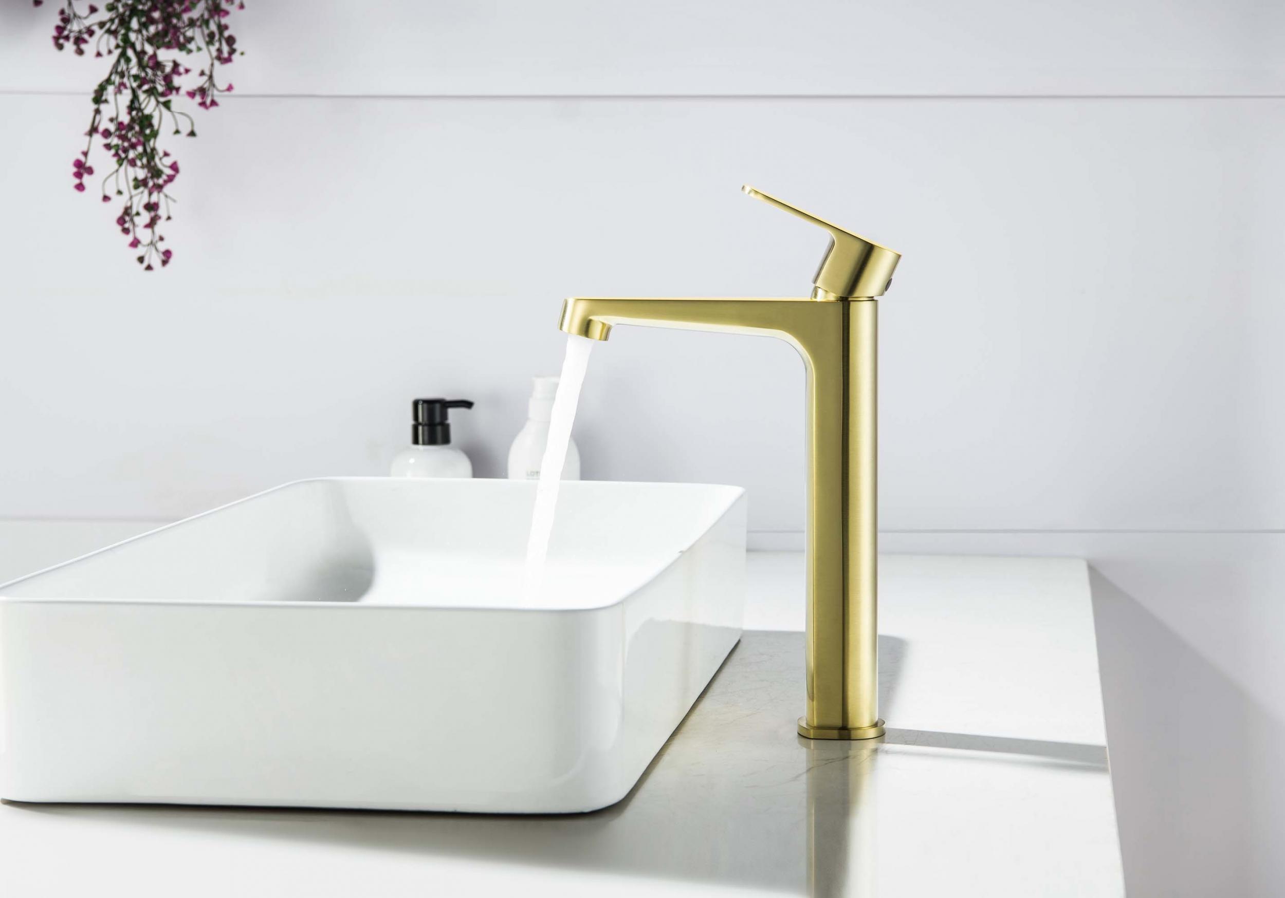 Смеситель для раковины высокий Aquatek Оберон AQ1204BG, золото шлифованное
