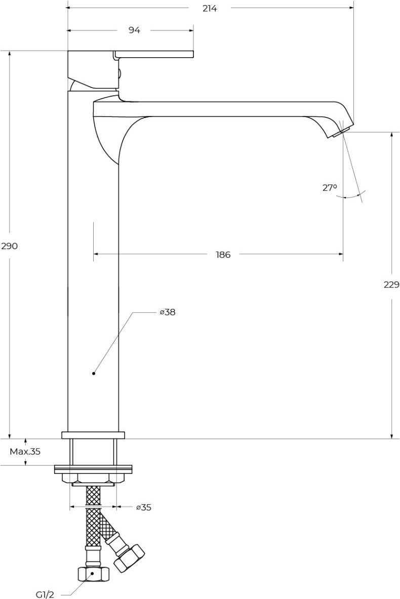 Характеристики смеситель для раковины высокий BelBagno (AURORA-LMC-CRM-W0)