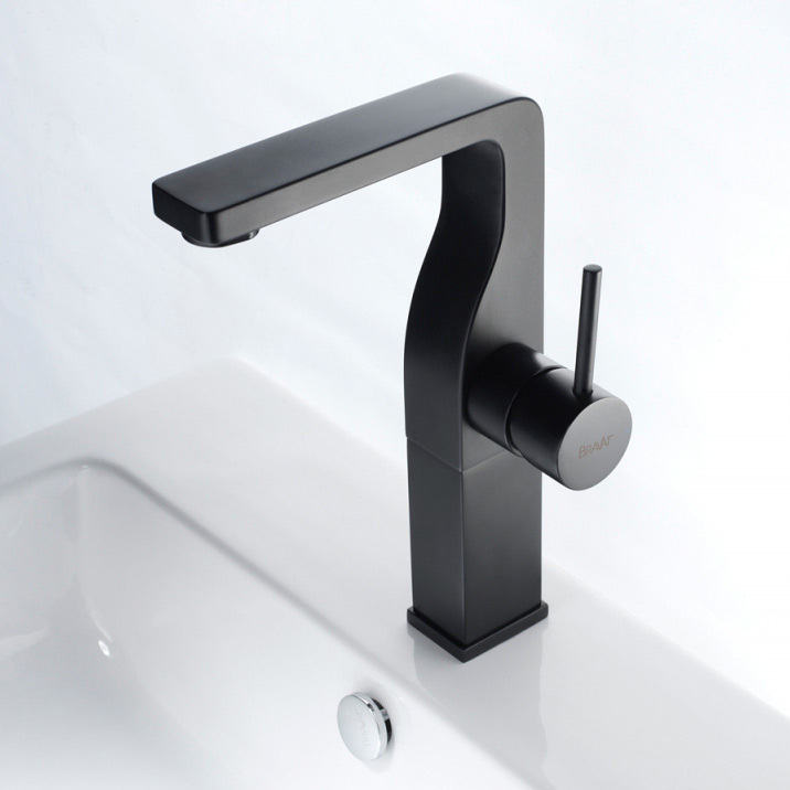 Смеситель для раковины высокий Bravat Arc F16061K-A2-ENG, материал - латунь, цвет - черный.